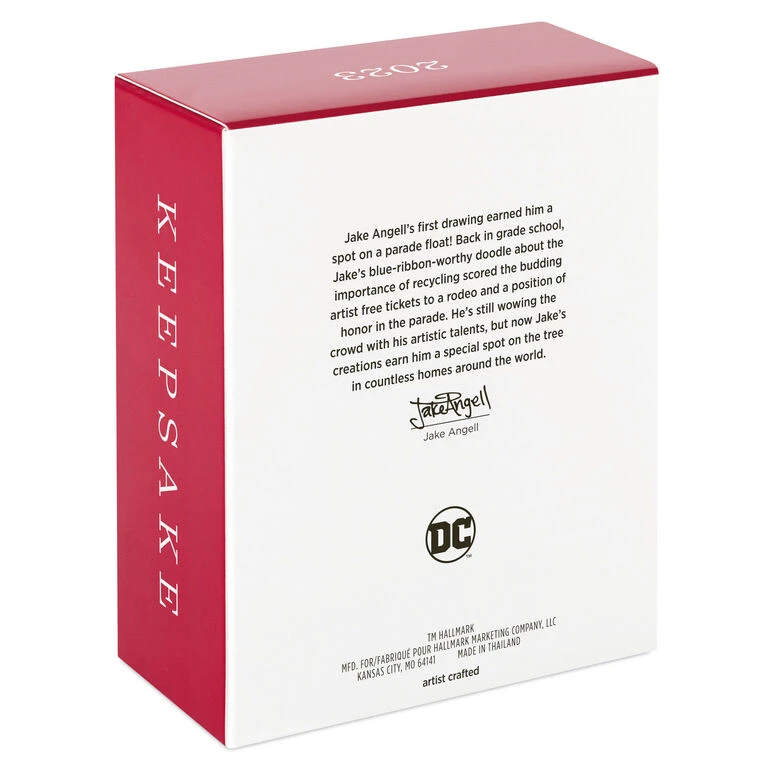 - Additional Details: Artist crafted by Jake Angell. Plastic Christmas tree ornament.
