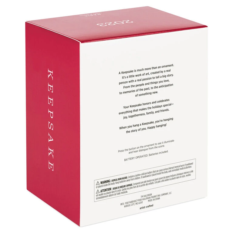 - Key Features: Press the button on the Magic Light and Sound ornament to see it illuminate and hear dialogue from the scene.