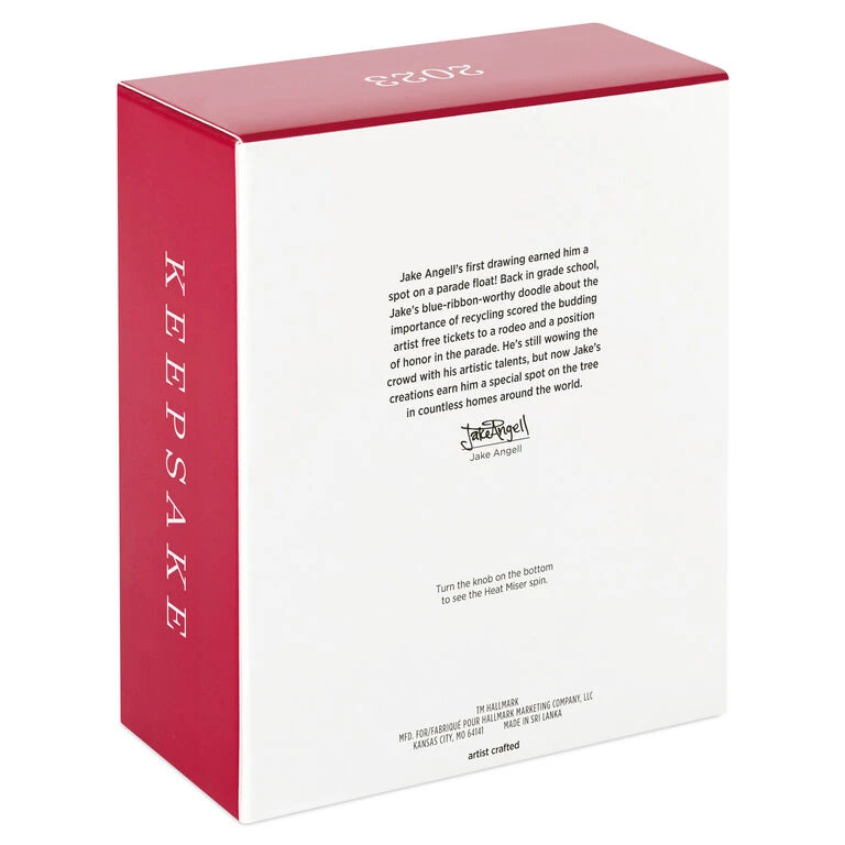 - Additional Details: Artist crafted by Jake Angell. Plastic Christmas tree ornament.